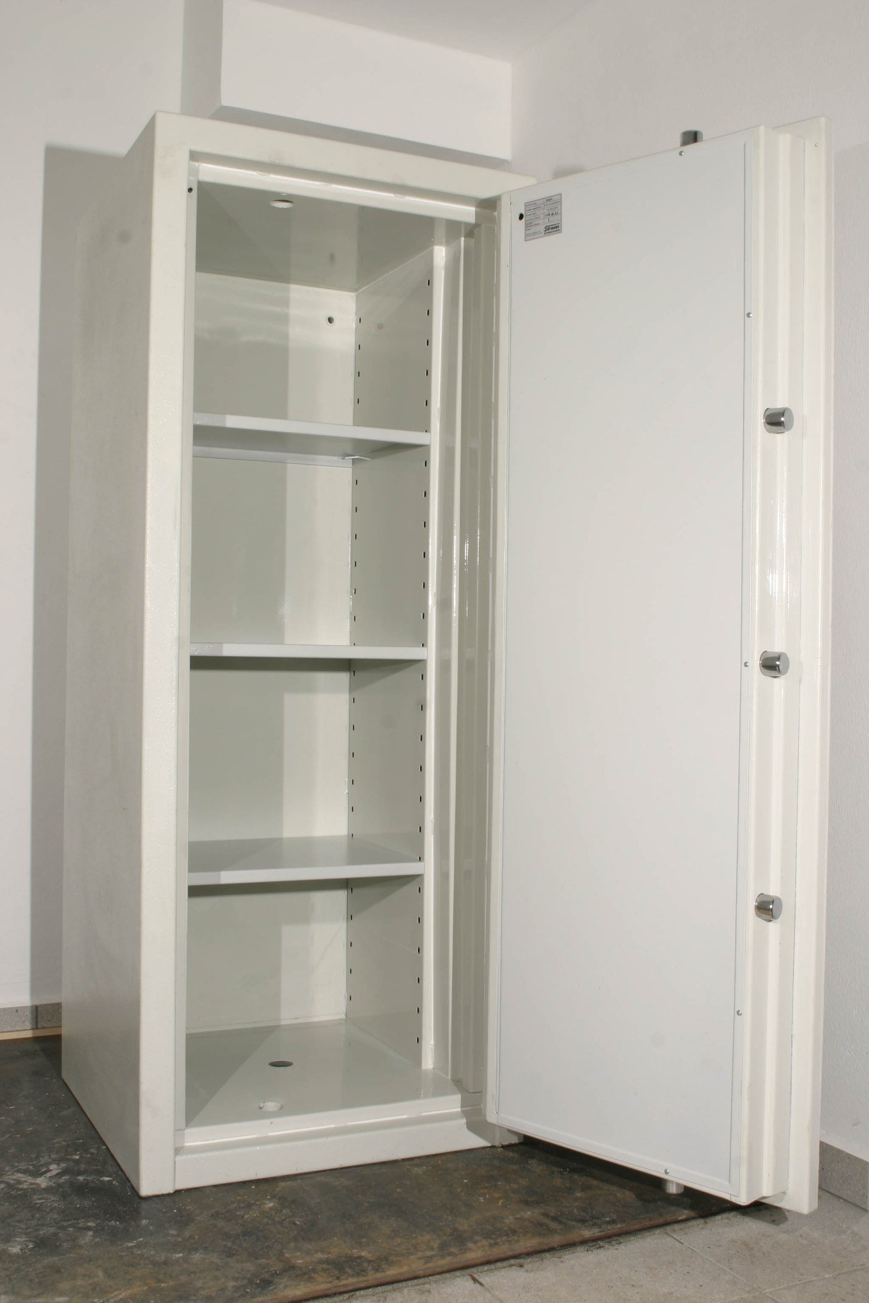 MABISZ G kategóriával rendelkező széf, 20 millió forintig biztosítható, riasztó rendszerbe kötve 40 millió forintig.