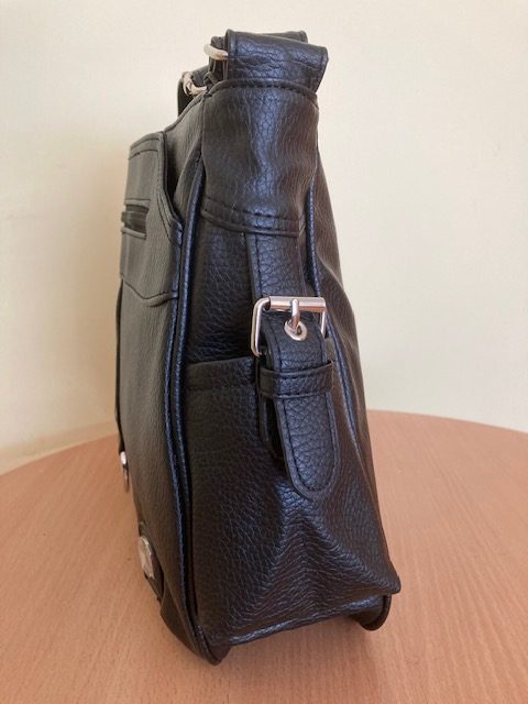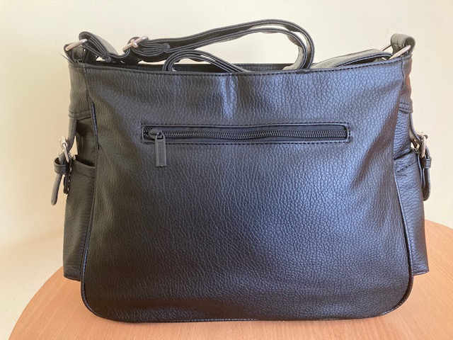 A táska kiváló minőségű, esztétikus női divattáska. A táska színe, mérete kiválóan alkalmazkodik a munkahelyi elvárásokhoz. Semleges fekete színe, mindenféle női öltözékhez illik. Méretében a táska funkcióját figyelembe véve alkalmas a napi pénzbevétel bankba történő szállításához.