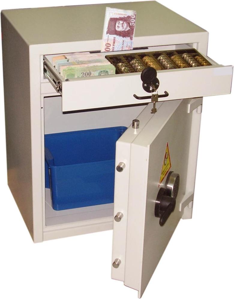 A termék pénztárfiókkal kombinált páncélszekrény. A fiókban összegyűlt nagyobb mennyiségű bankjegy, a fiók hátsó részében található bedobó nyíláson keresztül egy mozdulattal az alsó páncélszekrénybe helyezhető. A bedobó szerkezet a minősítésnek megfelelően kihalászás gátlóval védett. A bedobott bankjegyek a páncélszekrényben egy gyűjtőrekeszbe kerülnek.